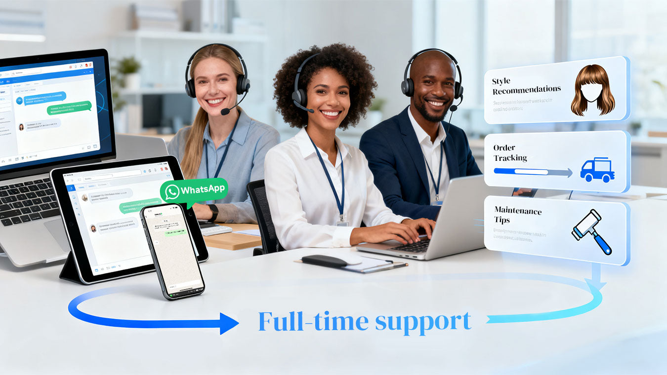 Our dedicated support specialists are available through email, WhatsApp, and live chat, ready to assist with styling advice, order tracking, and maintenance tips — because our service doesn’t end after your purchase.