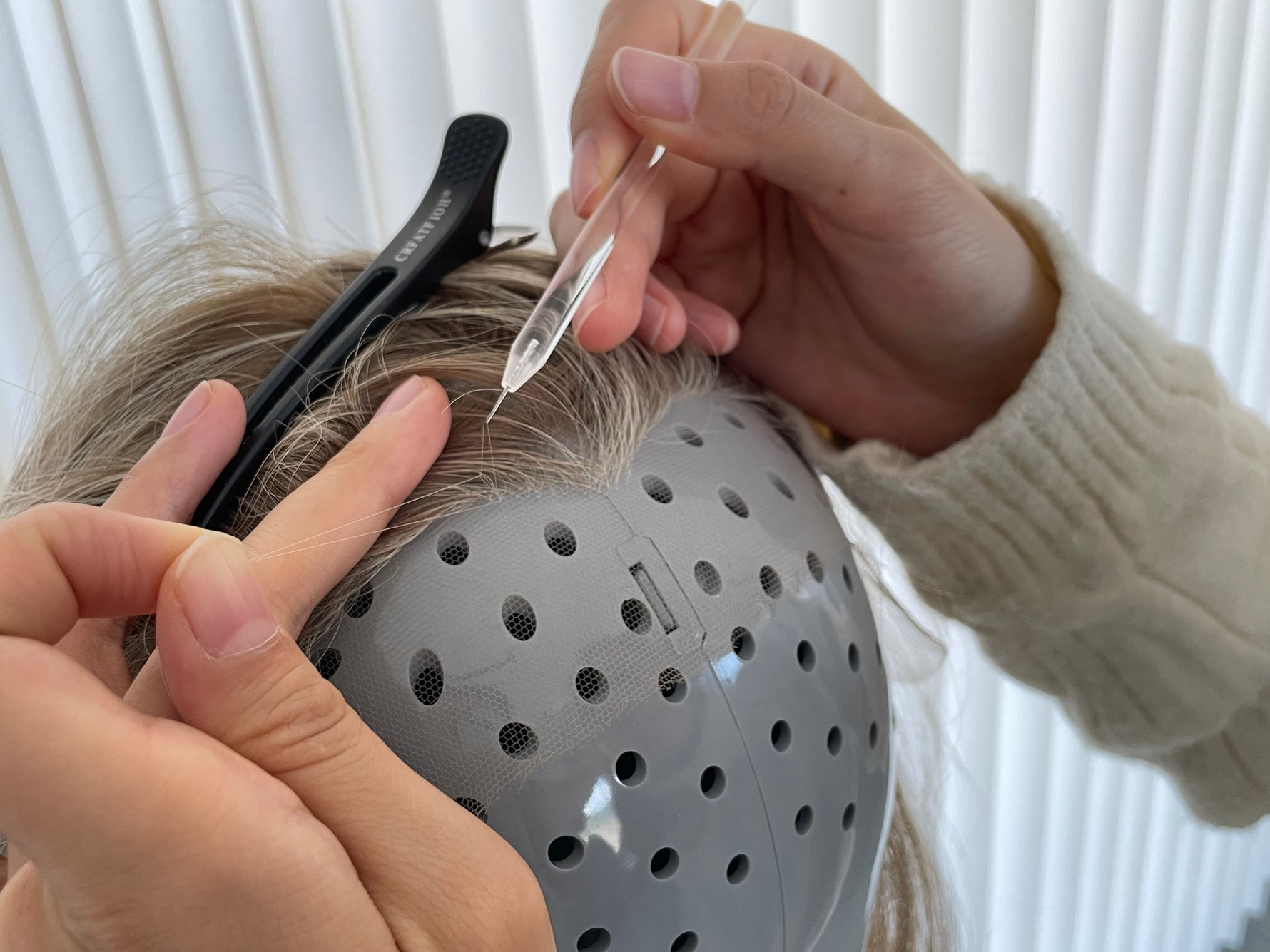 Step into our production studio, where skilled wig artisans hand-tie every hair with care and precision.